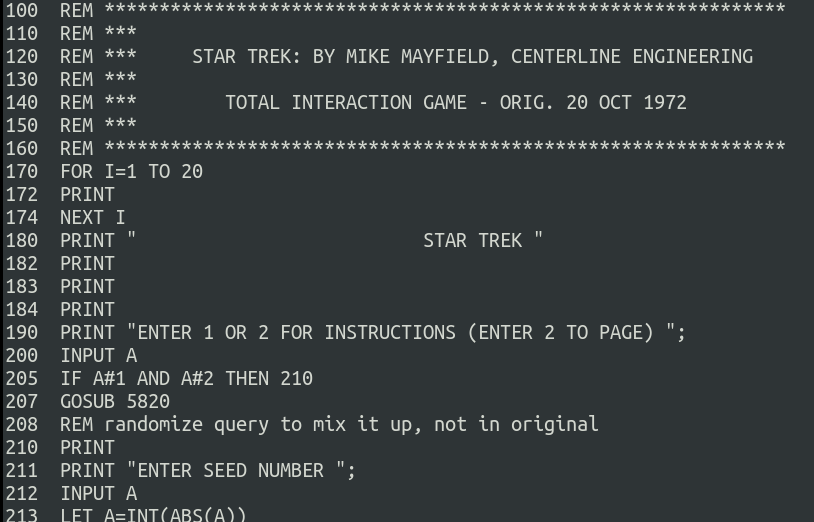 Fa més de cinquanta anys que els informàtics ja provaven de programar grans ordinadors per jugar. En aquest cas, en Mike Mayfield va escriure un joc d’estratègia en un aparell d’aquells que ocupaven una habitació. Volia fer la seva versió, una que es pogués jugar amb un tèlex, d’Spacewar! Així s’entén aqueixa obsessió de convertir una Pastura per les estrelles en un joc de guerra (ja en xerraré d’això a un altre article).